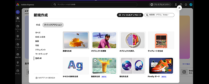 「アドビのエクスプレスで何をAI生成できるんだっけ?」