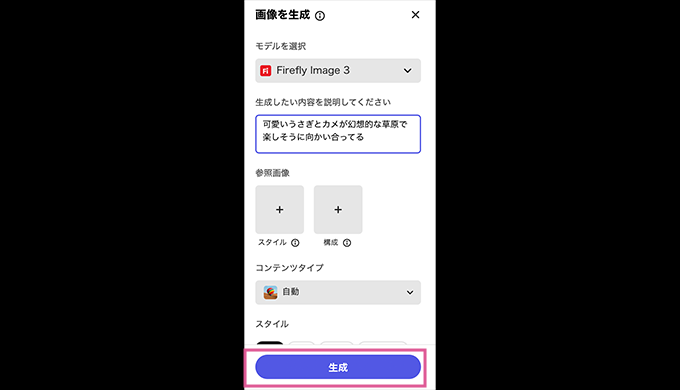 他にも、Adobe FireflyでAI生成を使う方法について興味がある方はAdobe Fireflyで画像・イラスト生成の記事を参考にしてみてください。