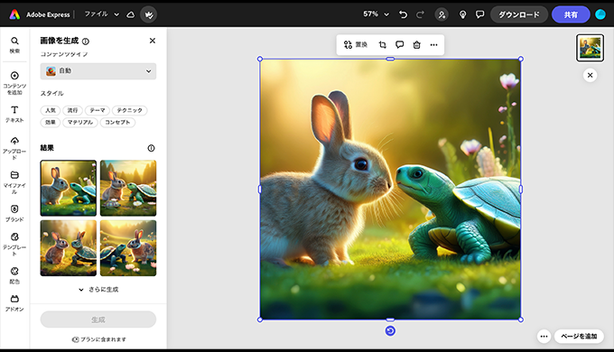 今回はAdobeのAdobe Express(アドビエクスプレス)でAI生成する方法をご紹介してきました。