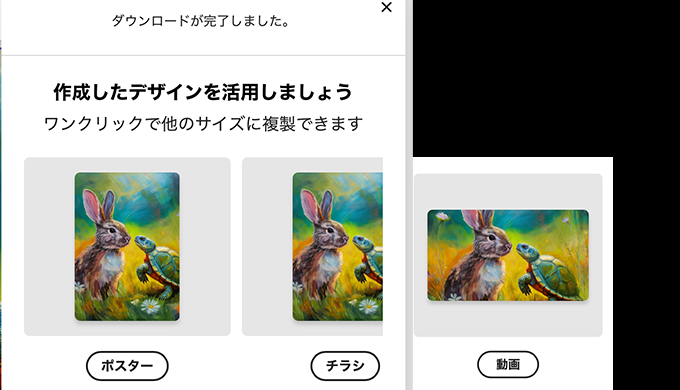 ダウンロードした後にポスター・チラシ・動画用など他のサイズに複製できます。