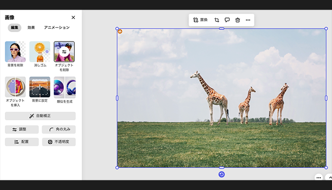 オブジェクトを削除もしくは、 オブジェクトを挿入を使うために、まずは画像をアップロードします。