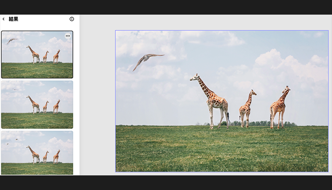 結果として候補は左下に4つでてきて、さらに生成をクリックする度に複数候補が出てきます。