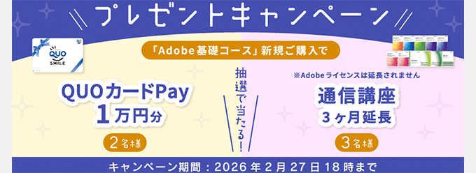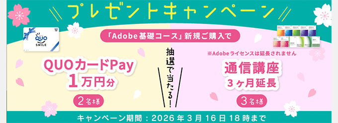 Adobe基礎コース新規購入で抽選プレゼント