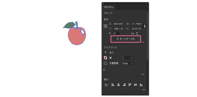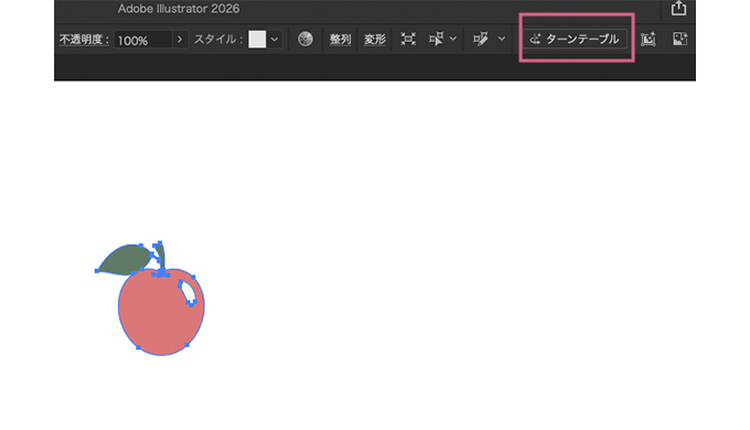 オブジェクトを選択ツール(V)で選択した状態でターンテーブルをクリックします。