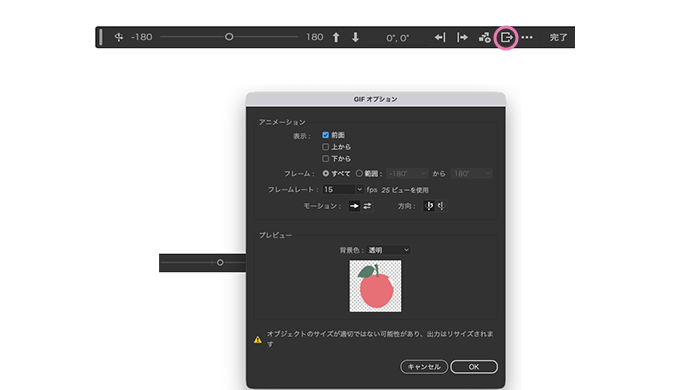 さらにその隣のマークをクリックするとGIFで書き出すことができます。