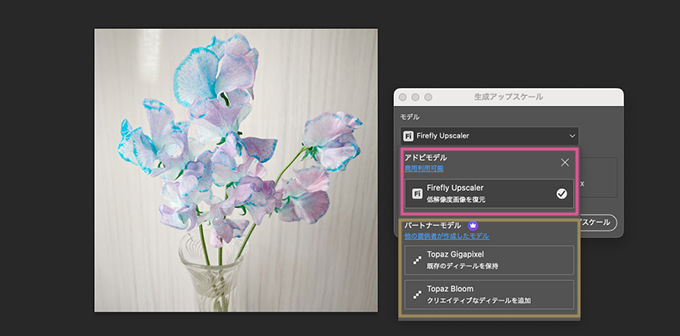 ちなみに上記画像のようにアドビモデル以外のパートナーモデルも使用できます。