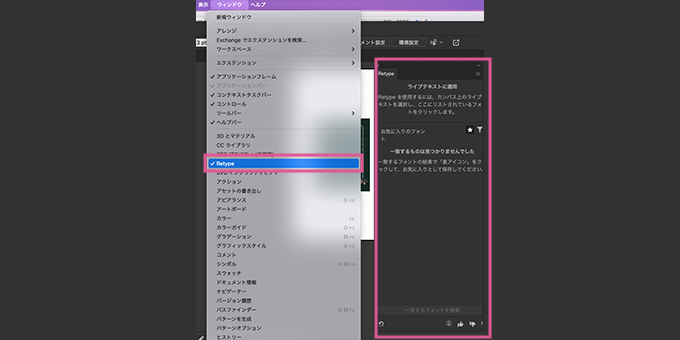 ウィンドウ → Retypeでパネルを開き文字を選択して一致するフォントを検索をクリックしてもOKです。